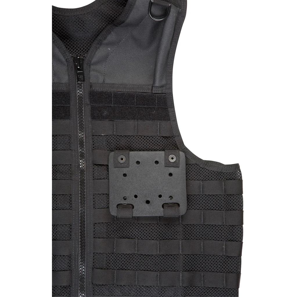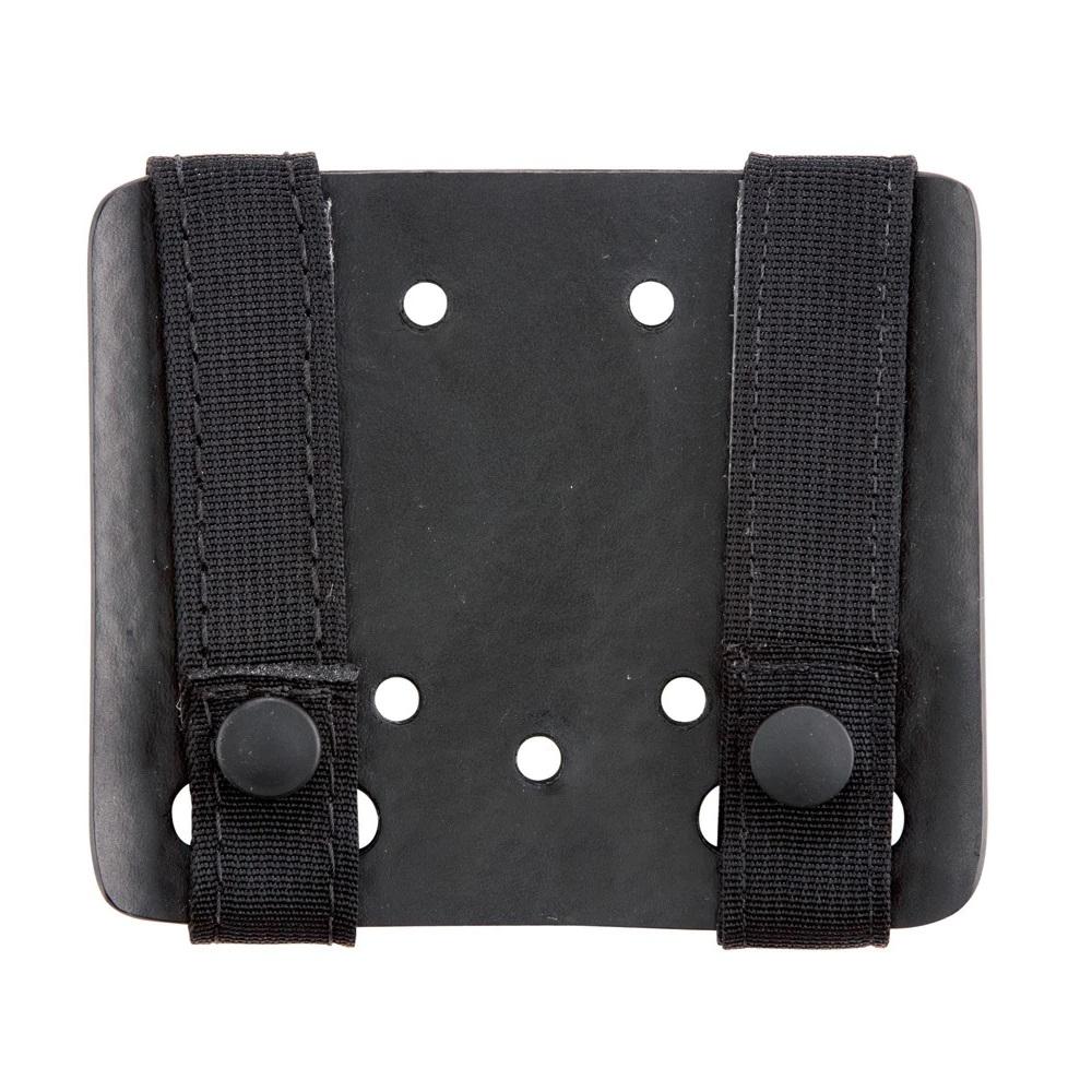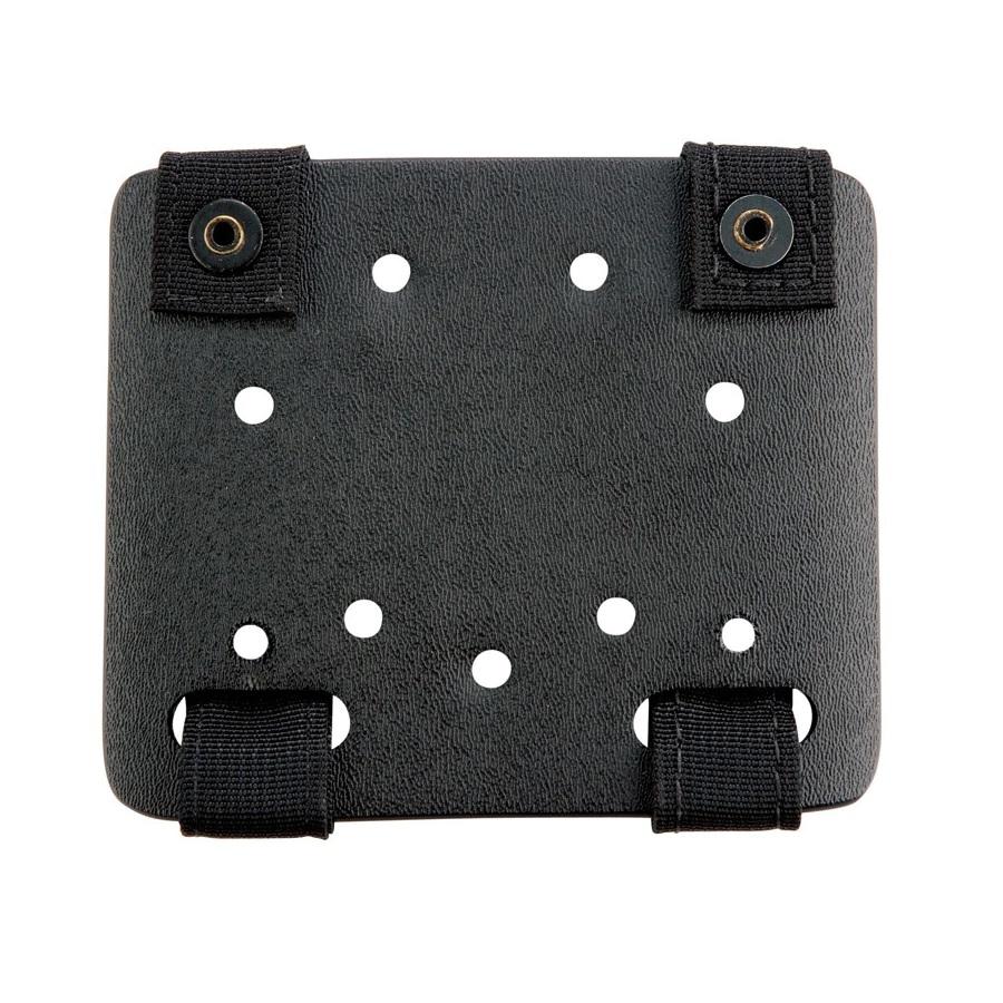 The small MOLLE Adapter Plate is used to attach holsters and pouches to MOLLE looped vests. Using Allen screws and the mounting holes in the plate, user can attach one holster in vertical or angled position, or two accessory pouches affixed side by side. Constructed of a sturdy polymer, it has two pieces of 1 in. webbing on each side of the plate that weave through and snap around the MOLLE loops for secure attachment of gear. Offered in Black, OD Green, Foliage Green, FDE Brown, or Coyote Brown.