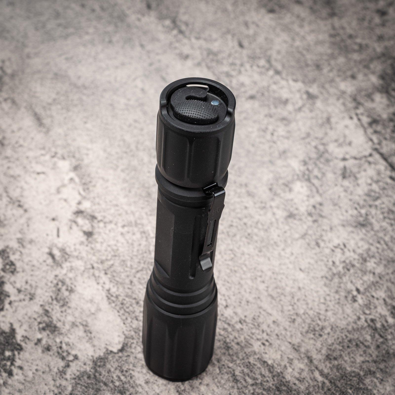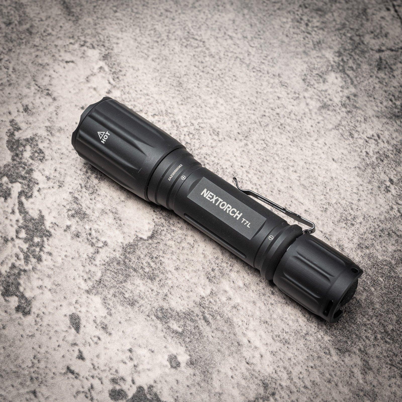 The Nextorch T7L has only 1 switch. It's a forward click for power and mode switching. Later, I will explain more about how it works. The tailgate switch is shrouded about 100 degrees. From 1 angle, you can actually put your thumb on the switch. This is a great feature because you can still have it tailgating and flick the switch comfortably. It includes a pocket clip that fits under the tail cap. It fits snugly and can only be removed when the tail cap is unscrewed. Simple function! Its size is neither small nor very large. And because it is an 18650 flashlight, the thinnest part of the fuselage is relatively narrow. But it does feel a little slippery as there isn't any real knurling on the body tube. If I were Nietorch, I would improve this to make a better flashlight!