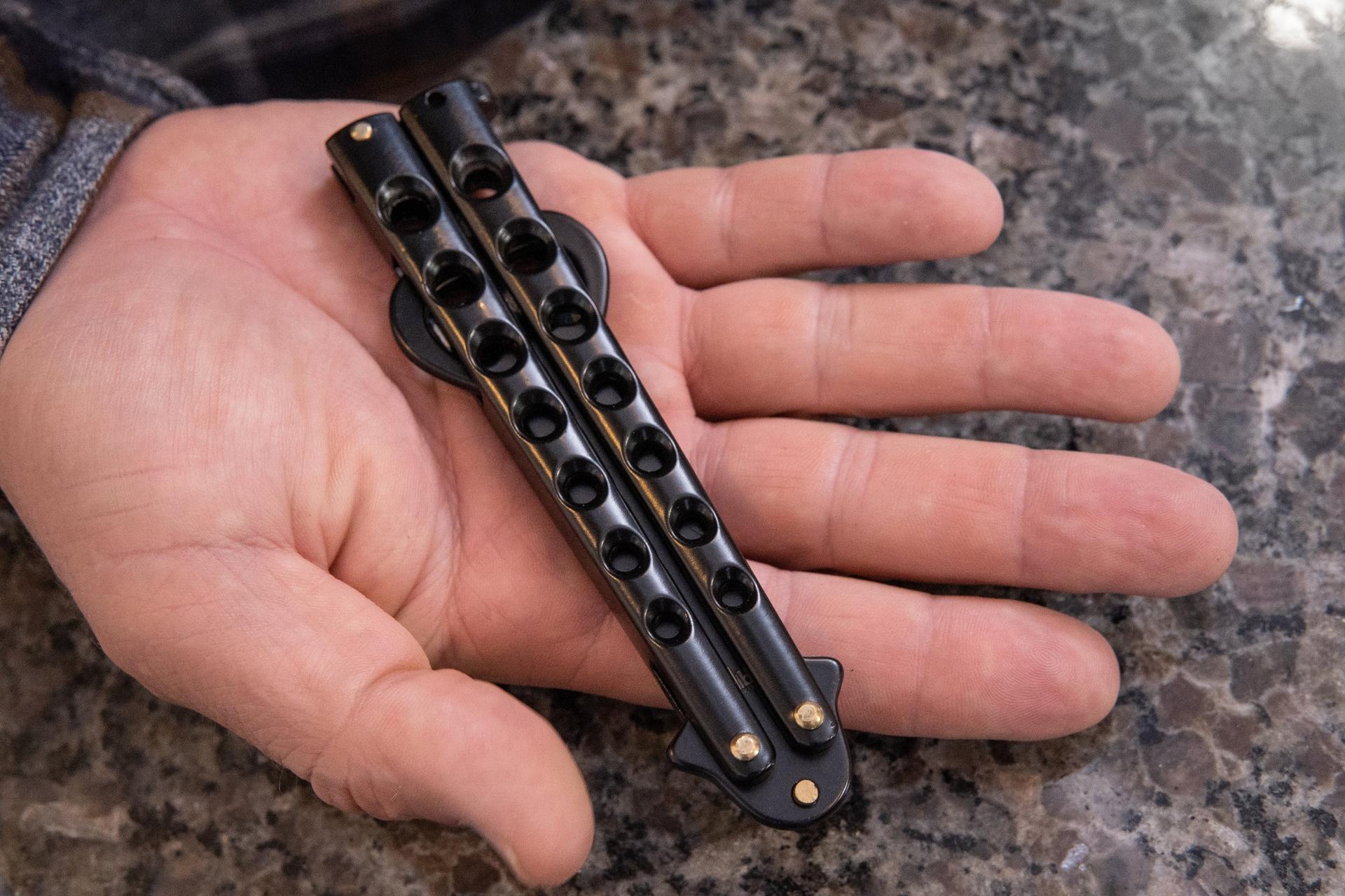 • Designed to look just like a Butterfly Knife