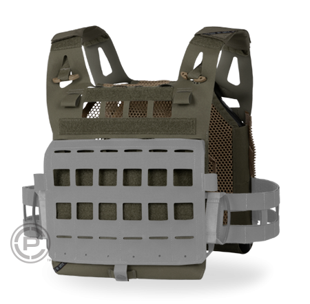 Vertical webbing loops on front carrier to support detachable chest rigs