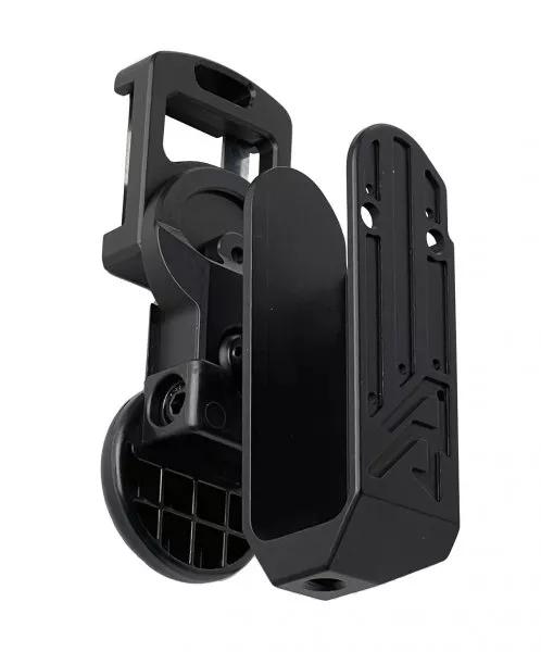 Ball joints and rail height adjustment are derived from the design of the Alpha-X holster