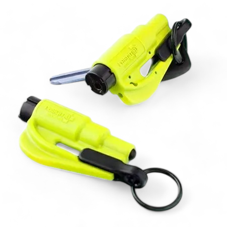 This 2 in 1, safety and survival tool, allows you to cut a jammed seatbelt and to break a side window in your car.
