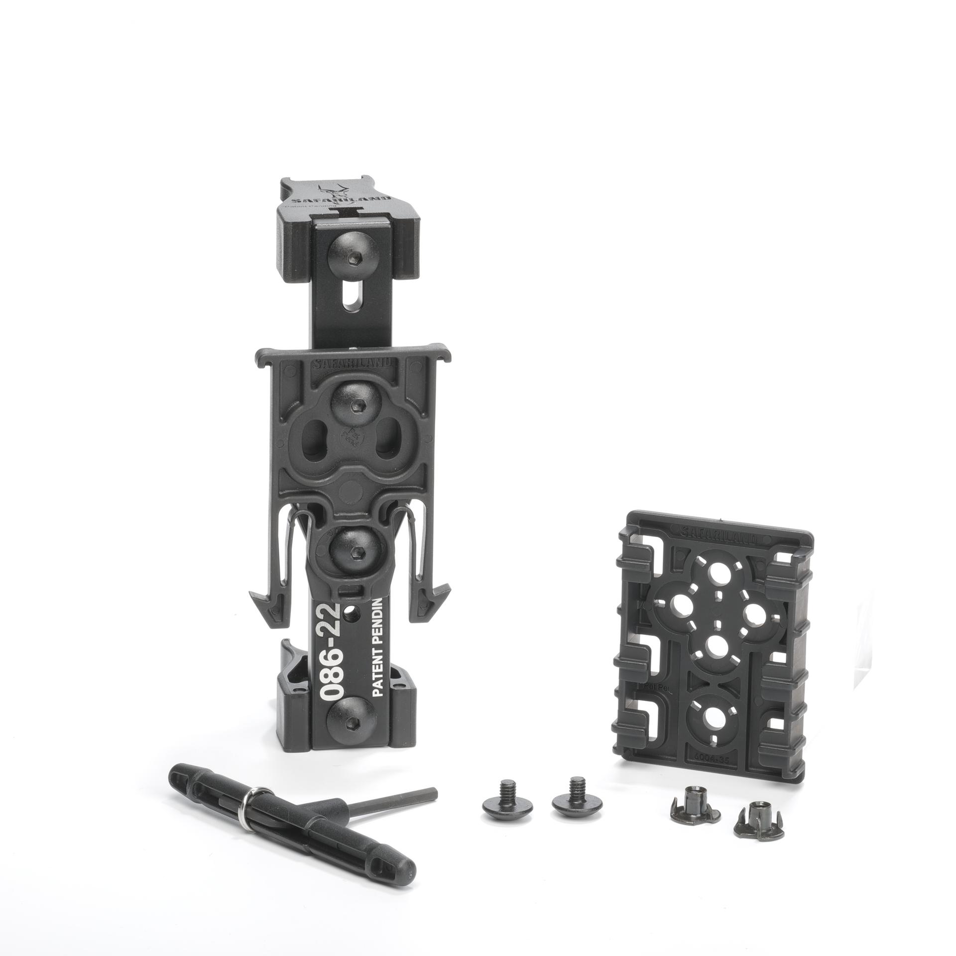 The Model 086-2 is designed with a carrier system that holds (2) shot shells in a single row and adds agility with its unique retaining plates. These plates keep shotgun shells from dislodging, and allows for quick, fast removal. The sturdy, light-weight aluminum plates allow for ride-height, angled cant adjustments and a wide variety of shell lengths. Available in Black and red with the ELS 34 Locking Fork, ELS 34 & ELS 35 Fork/Receiver Plate, 745BL Belt Clip, or 744BL Belt Clip.