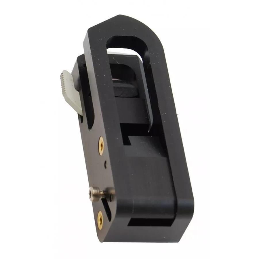 5. To remove the slide lock from the block, unscrew the M3 screw visible from the back of the block – and then slide the slide lock upwards and out through the window in the block – passed the safety lever, which must be in the unlocked position.