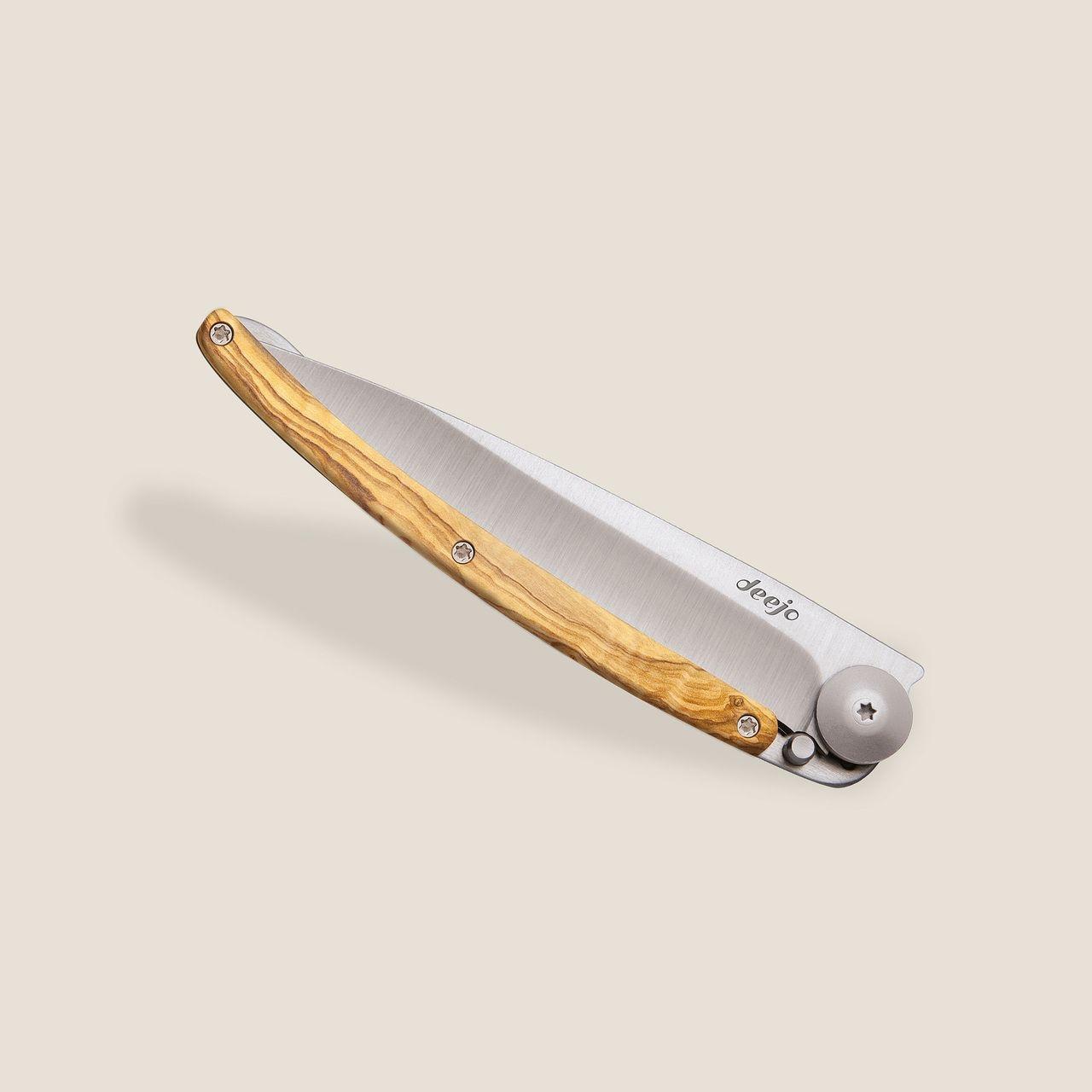 An olive wood of choice, all veined, adorns this handle with an incomparably sharp blade. A model formidable in character, clear and confident, for an impressive result.
