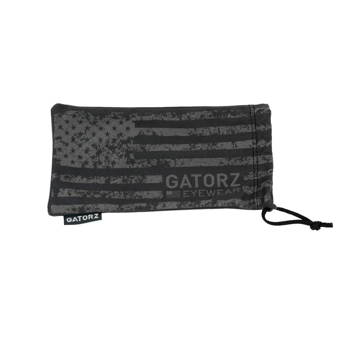 Soft micro-fiber pouch with the American flag and Gatorz logo printed on both sides and a drawstring closure at the end.  Keep your Gatorz Eyewear inside, when you're not wearing them, to protect from scratching.
