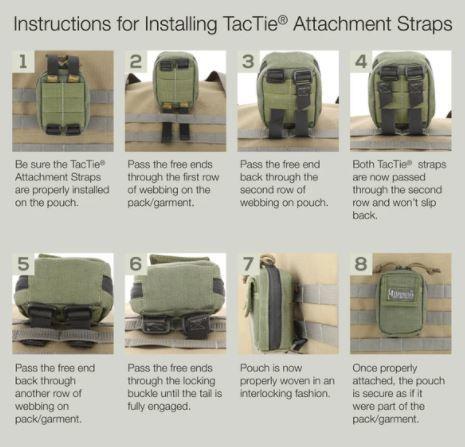 Maxpedition 正在申請專利的 TacTie® Attachment Strap 系統用於以互鎖方式輕鬆地將附件口袋集成到背包、背心、MOLLE 設備和 PALS 表面上。
