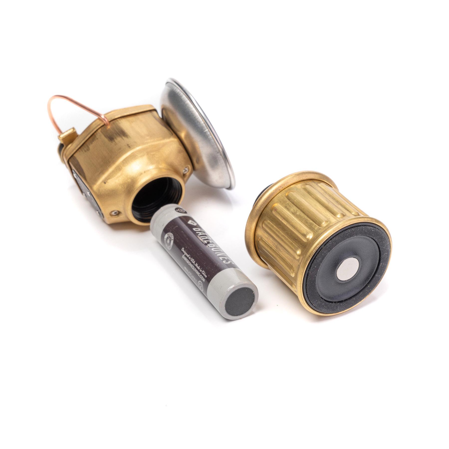 Barebones 復古礦工燈, 採用銅和黃銅外壳, 頂部手提掛扣掛在樹枝或支架, 底部磁鐵盤可固定在金屬面